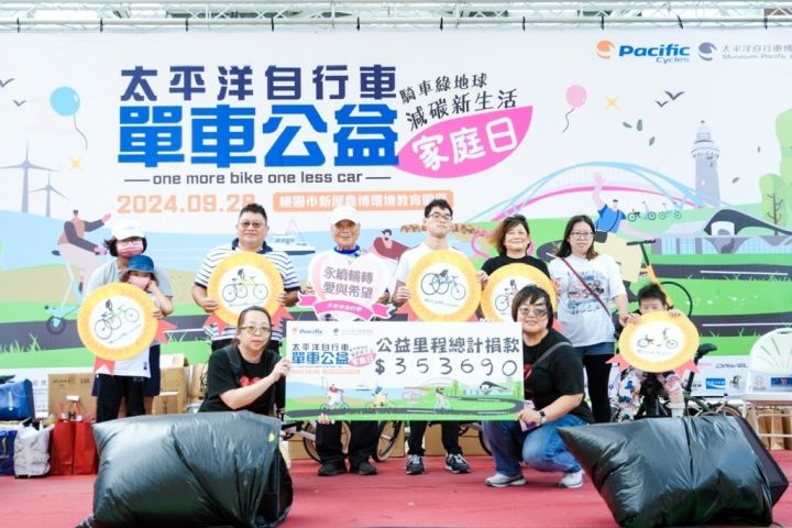 2024太平洋自行車單車公益家庭日活動,於9月28日在桃園市新屋區農博環境教育園區展開,吸引千名車友參加。太平洋自行車董事長林鳴皋表示,太平洋自行車單車公益家庭日邁入第14屆,感謝參加公益騎乘的車友及來賓,不畏風雨齊聚桃園農博環境教育園區,將汗水轉為公益,響應太平洋自行車以「你騎一公里,太平洋捐十元」的公益活動,同時也享受桃園沿海地區美麗的風景及豐富的外場補給美食。