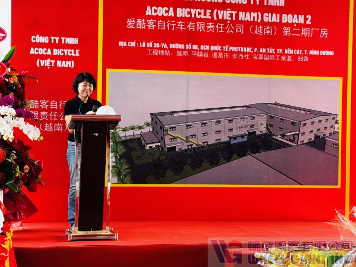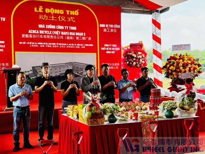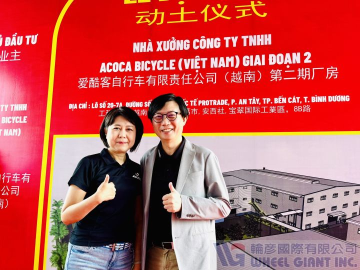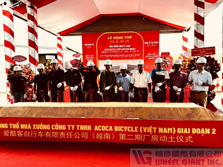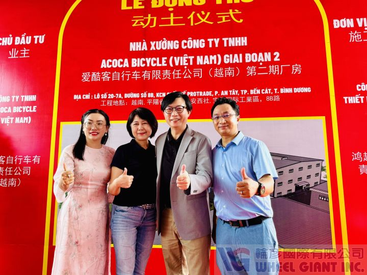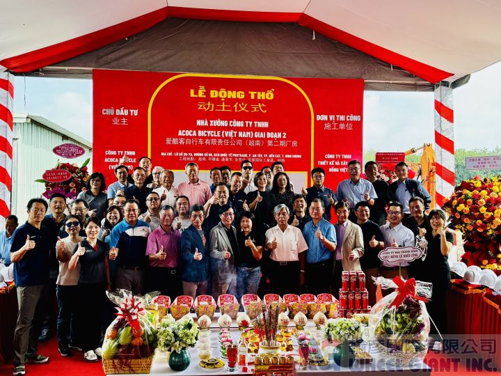 華慶(Acoca)於10月16日舉行越南廠愛酷客自行車二期工程的動土典禮,TBA理事長&輪青會會長吳盈進、越南台商自行車聯誼會會長方信介、輪青會會員以及越南自行車業者皆到場祝賀。