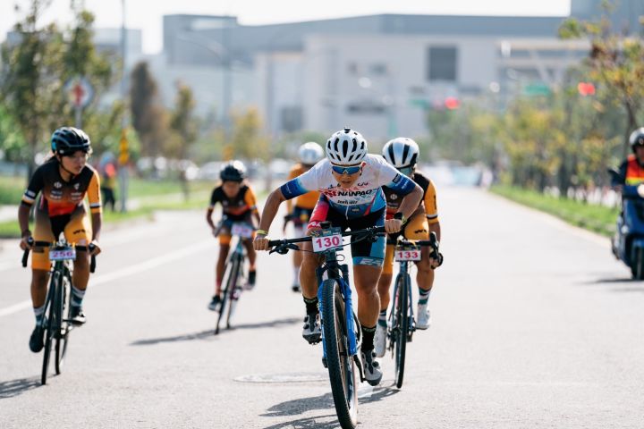 ▲限時繞圈賽事女子不分車種由台灣MTB一姐蔡雅羽,在眾多公路學妹的包夾中以優異的衝刺能力封后