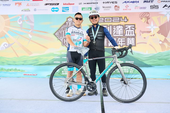 今年的活動祭出總價值近百萬元的豐富抽獎品,其中最大獎是價值142,000元的SCULTURA 7000,由來自台中的幸運得主林先生抱回。他是多次參加美利達活動的忠實車友,當他從美利達總經理曾上原手中接過自行車時,忍不住興奮大呼:「實在太幸運了!」