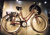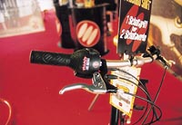 舒適受推崇 避震上下功夫 綜觀各家新品,一般都認為,在自行車發展已達臨界點的當兒, EUROBIKE展會的產品可歸結為:舒適。Centurion甚受推崇的全避震 touring「Lhasa Comfort」、座墊呼聲最大的Selle Royal、Specialized等都以凝膠座墊、舒適騎乘為號召,避震座管也多見於 touring車上。Giant推出的NRS避震系統則強調不會造成任何騎乘的能量耗損及震動的 影響。舒適成了廠商的允諾。 若在會場做一趟「發現台灣」之旅,仔細一瞧從腳踏、座管、豎管、座墊、前叉