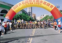 登輝大道口8月7日的清晨人山人海,因為第八屆台北國際自由車邀請賽待會就要在此鳴槍。台北縣體育 會自由車委員會主委、日馳公司徐義雄董事長穿梭於會場迎接貴賓、剪綵,還 不忘端詳日本選手車上的變速器,並期勉安全第一,再求成績,年輕好手踩進 世運。副主委-立富公司蕭高旭董事長稱讚這場世紀末盛事,感謝八年來大家 的熱心參與,但每年都得「排除萬難」,故呼籲更多關注。果真立委王雪峰允諾 召開公聽會,副縣長林萬億則力推議會研擬建場地,以解決無處騎車的窘境。 從海邊攀山顛 浩捍拔頭籌 數百人同時啟動,車龍逐漸漫延至石門路段,車手紛紛與海風競速,來華尋求 衛冕的香港隊梁志恆高舉手臂,苦候補給車不得,敗給壓到反光片的爆胎。`9 4年全澳繞圈賽金牌Steve Lack馬力頻催,終究不敵施工路面。承辦賽會的張勝凱教練也露 一手,趁地勢平坦發動攻勢,一度成為車龍的箭頭。 進入陽金公路後,賽程只剩15公里,卻是要攀升1000公尺的一段結結實實的好漢坡,主集團人數銳減, 纏鬥反更激烈,台中浩捍隊人海戰術掩護主攻手丁正昌、劉金鋒。嗅到馬槽橋附近的硫磺氣,煙硝味爆漲, 捷安特名將陳智豪、桃園縣吳宏一雙腿似乎猶蘊藏無限能量。 冷水坑終點線為寒霧籠罩,氣氛跟著凝結,劉金鋒的身影劃破這摒息以待的寧靜, 19歲的他數著音樂節奏踩踏奪冠,目標直指全運會。浩捍原主攻手丁 正昌認為學弟表現好,車隊戰術、默契佳,讓賢仍是美事一樁。陳智豪從後偷襲其屁股, 表明明日還有一仗! 城市繞圈 捷安特扳回一城 第二天陽光亮晃晃,日本隊鹽澤革盯著民眾打拳,曾拿下環日賽分站 第三的他似乎也要出招;捷安特戰將匆匆北上歸隊;浩捍隊老手菜鳥全投 入國際挑戰組,夠浩大,但還能驃悍如昨嗎?香港隊撂奪牌狠話;新竹縣 要力追積分。落後淘汰讓通過起始線落在主集團後面者,得到殘酷的淘汰宣判,直到僅存 10名選手為止,因此這段直線衝刺、卡位兵戎相見,澳洲光頭好手 Steve Lack單飛數圈不慎被卡位出局,丁正昌爆胎Say goodbye,朱匯森等諸多名將都已中箭落馬。 捷安特的紫金紅衫竄到前方,車手金髮惹得不知情的民眾議論紛紛,以為外國人要抱走大獎。最後一圈鈴響,劉 金鋒率先從最後一個彎道出現,終點線前30公尺回首一瞟, 讓尾隨的陳智豪伺機勝出,結束了扣人心絃的比賽。 戰火延燒至女子組,亞洲銀牌方芬芳嗆聲沒拿第一,教練載隊友閃人,她,自己騎回新竹。區運好手浩捍隊陳瓊 宜拒絕相讓,也要為男子組失利扳回顏面,果真錦上添花。 方芬芳因爆胎攪局猶搶得第二。 排除萬難辦比賽 活動熱絡獎品多 為搶有限的交通管制時間,各賽組倉促換場,今日化身現場立即時況轉播的張勝凱 教練,解說頭頭是道,搞笑功力一流,老戰友到學生都成揶揄對象,「鑫哥,騎在後面 還敢笑」「哇!痔瘡得第一!」「看,老國手拼老命衝刺了!」最厲害的是向蒞臨貴賓「心 戰喊話」:場地不佳又難覓,辦比賽大不易,立即得到善意回應。幼兒表演組四輪上陣, 家長跟著滿場飛,觀眾圍聚觀看這些小精靈,拍紅了手,笑酸了嘴。 兩天下來,台中縣浩捍隊累計72分,拿下團隊教練獎金。與會民眾身穿著韓國原裝